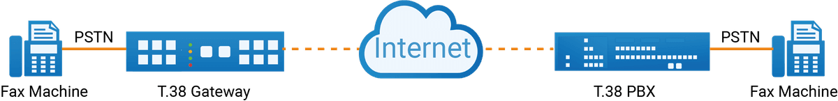 - The fax data is transformed into IP packets using the T.38 protocol, then sent over the internet to the receiving fax gateway.